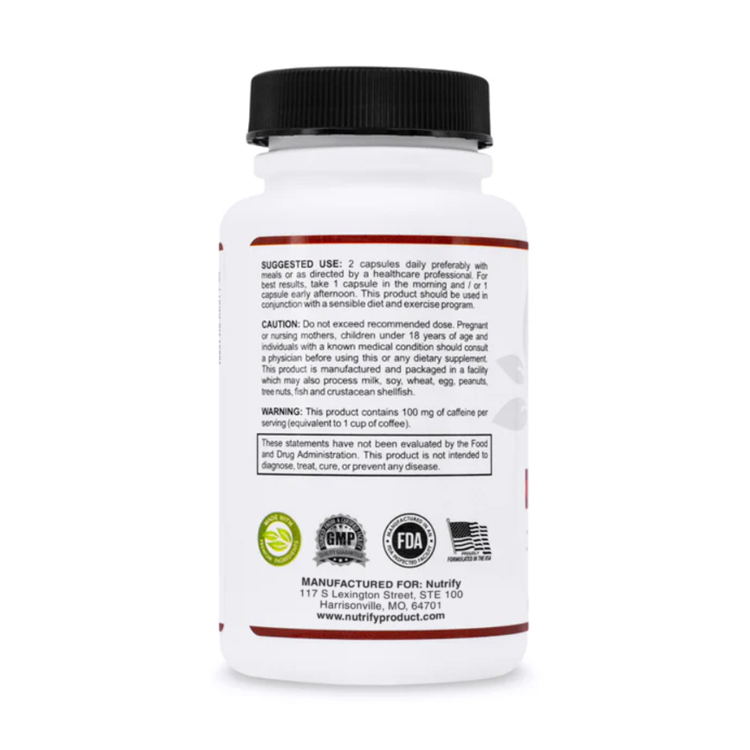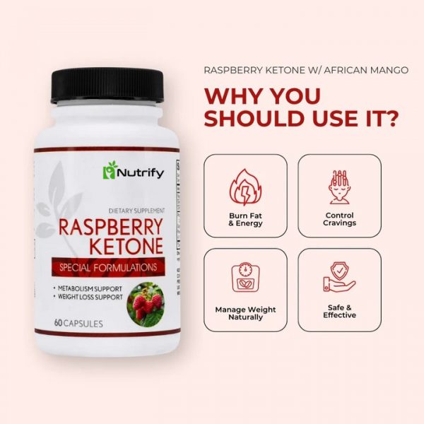 Nutrify brings you a special raspberry ketone formula with African mango, green tea leaf, caffeine, and other proprietary blends like Apple Cider Vinegar, Kelp powder, Grapefruit powder, and more. All these ingredients come together to: